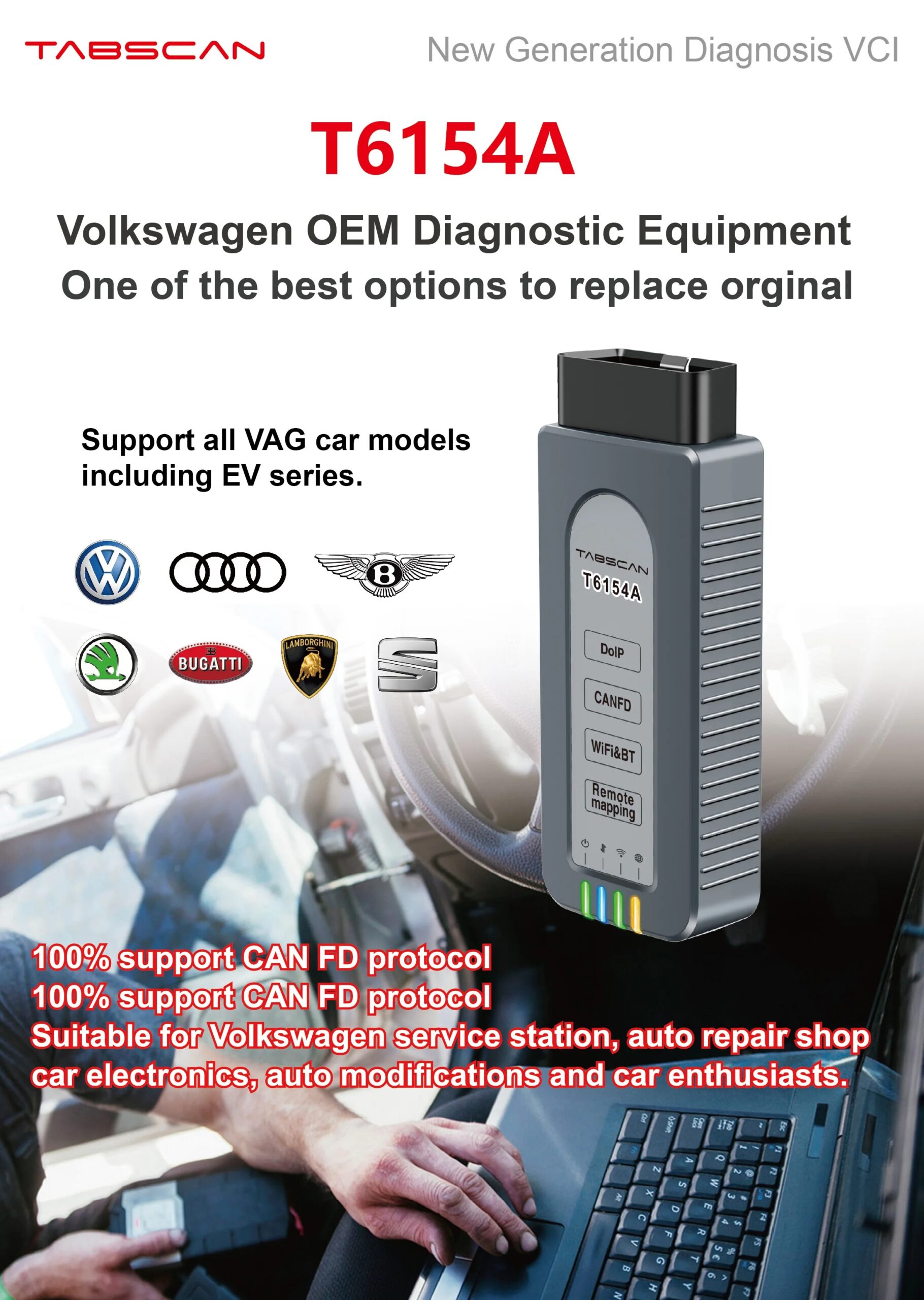 TabScan T6154A Diagnostic Tool for VAG Support CANFD, DOIP