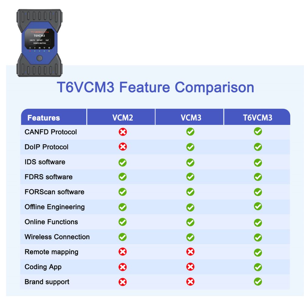 This device is designed for professional workshops, service centers, and experienced technicians who specialize in Ford vehicles and require a reliable tool with OEM compatibility. Compared with other Ford diagnostic tools in the same segment, the TabScan T6VCM3 stands out thanks to its six connection methods, exclusive mobile app support, and OE-level software integration, making it a cost-effective and future-proof solution for modern automotive diagnostics.